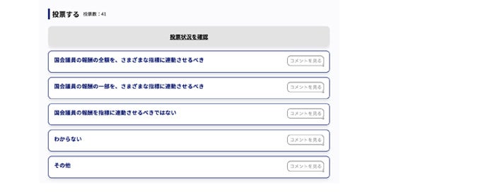 以上の背景を踏まえ、「【国会議員報酬世界3位】日本は1位のシンガポールのように国の指標に連動させるべきか?」という議題(イシュー)について自社SNS「Surfvote」上で意見投票を開始しました。
