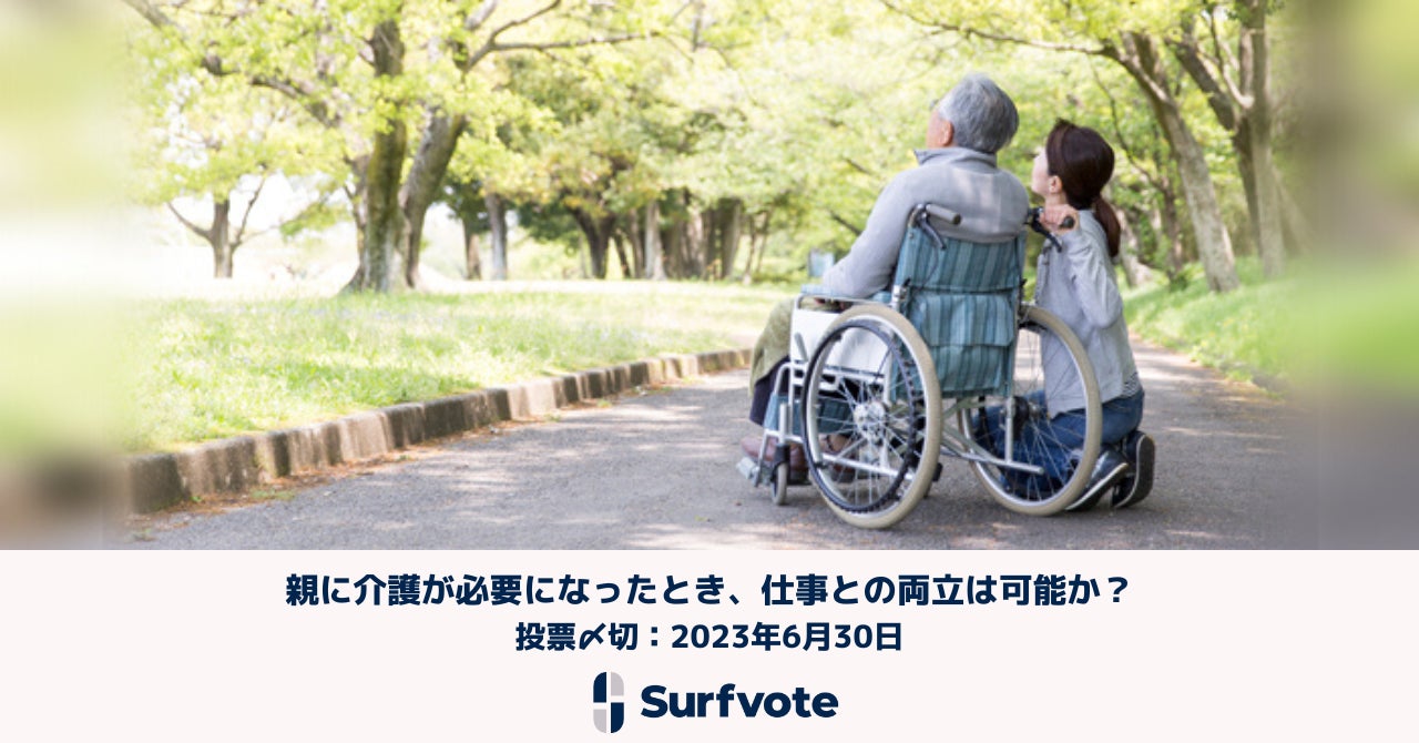 このような背景から、Surfvoteでは「親に介護が必要になったとき、仕事との両立は可能か?」というイシューを発行し、ユーザーに仕事と介護の両立について問います。https://surfvote.com/issues/jmgu36h791