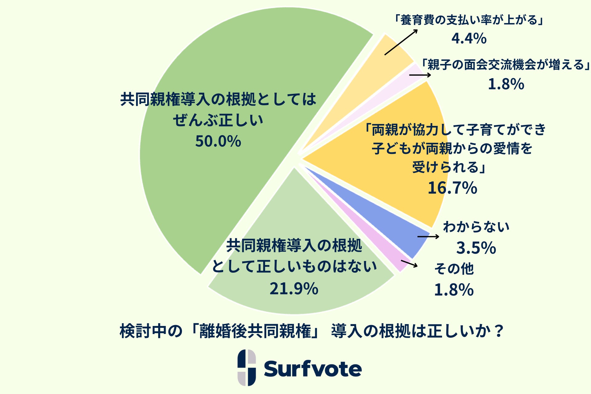 共同親権導入の根拠としてはぜんぶ正しい」50.0%