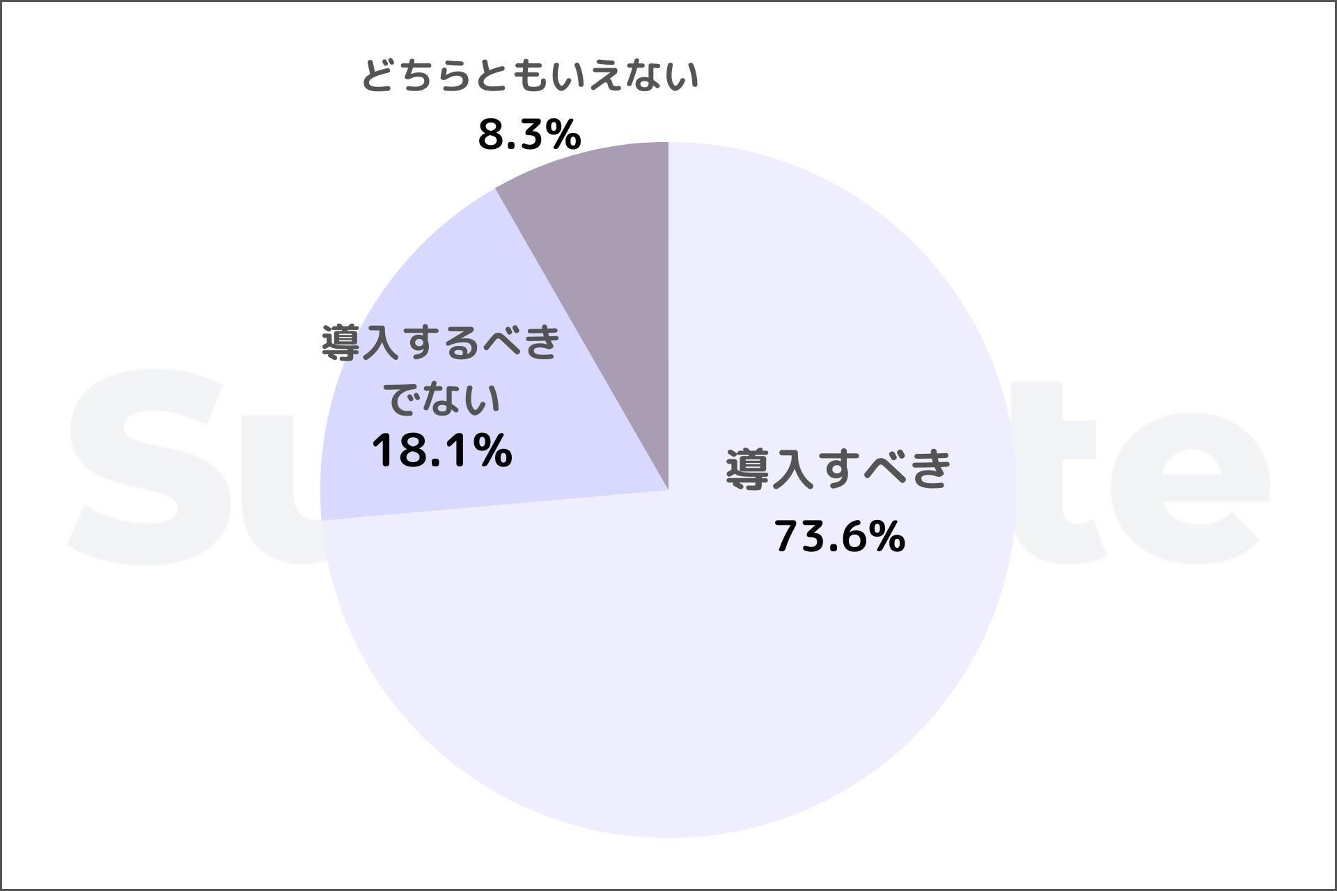 『導入すべきである』73.6%『導入すべきではない』18.1%『どちらとも言えない』8.3%。導入賛成派はアクセシビリティの向上を期待、一方で反対派はセキュリティや投票結果の信頼性を不安視する声。